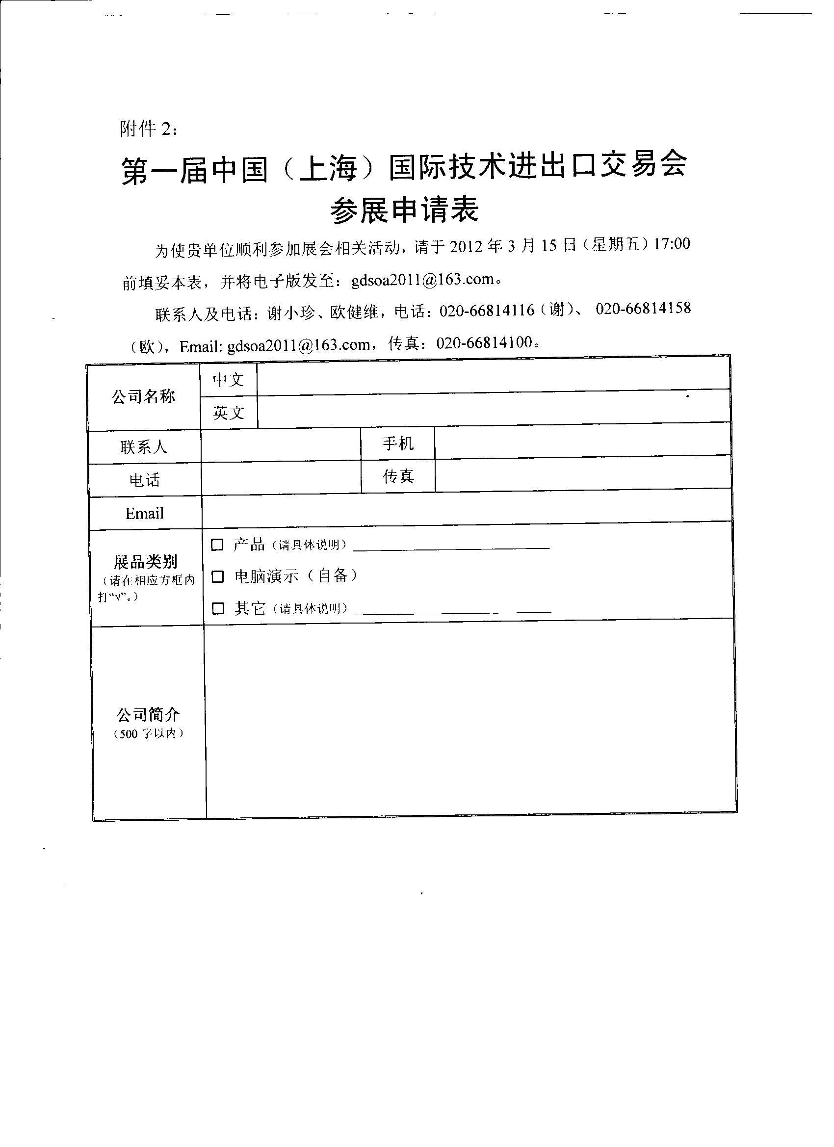 转发:广东省外经贸厅关于组团参加第一届中国(上海)国际技术进出口交易会的通知