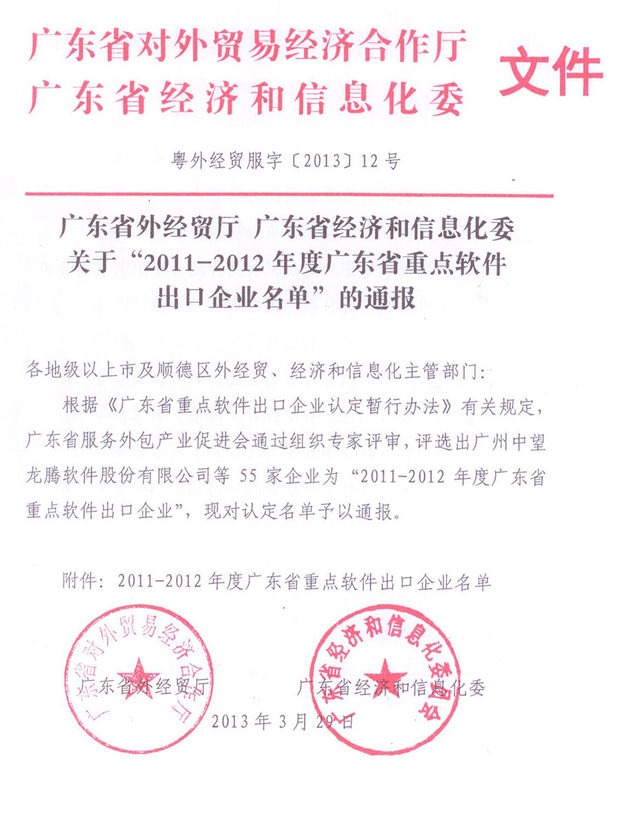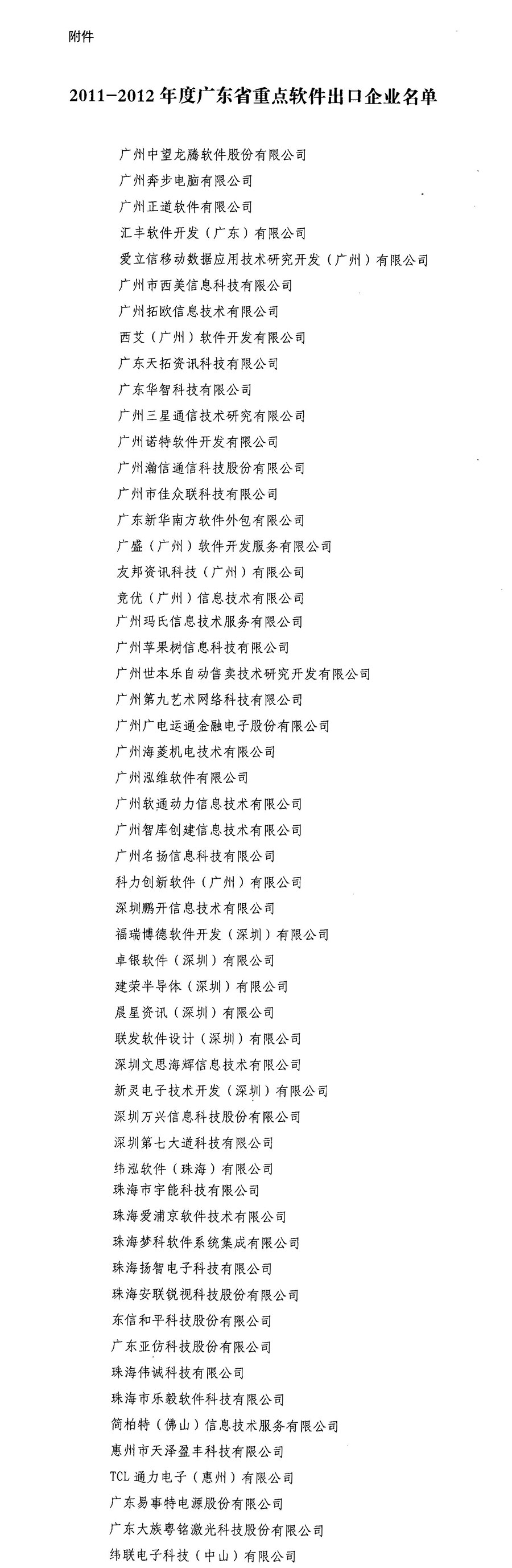 关于“2011-2012年度广东省重点软件出口企业名单”的通报