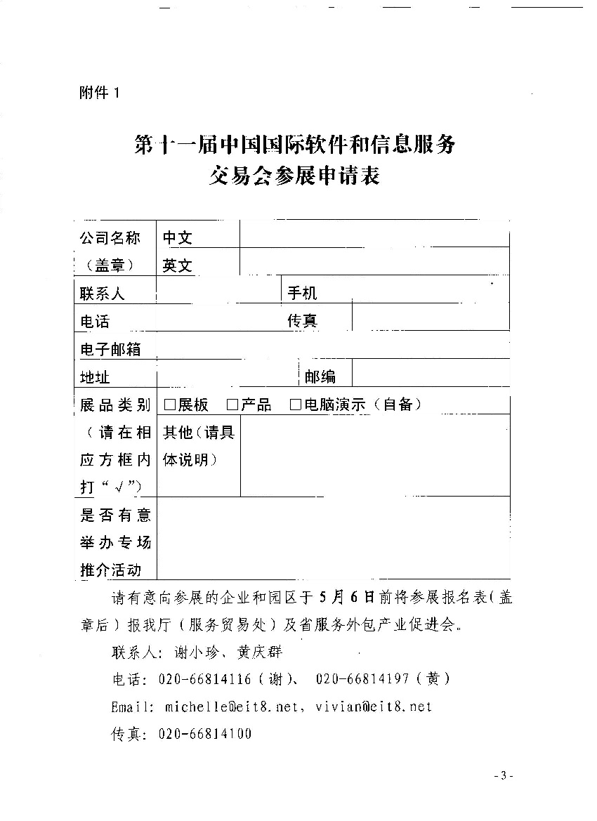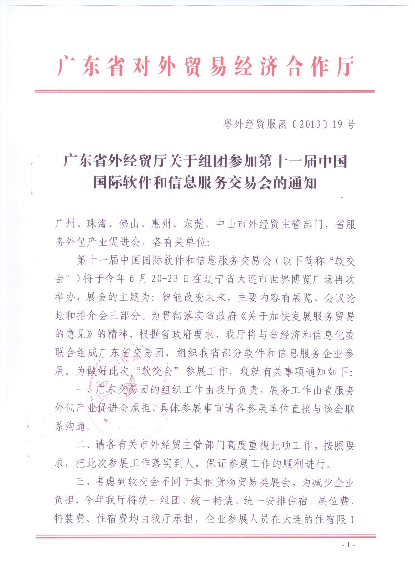 转发:广东省外经贸厅关于组团参加第十一届中国国际软件和信息服务交易会的通知