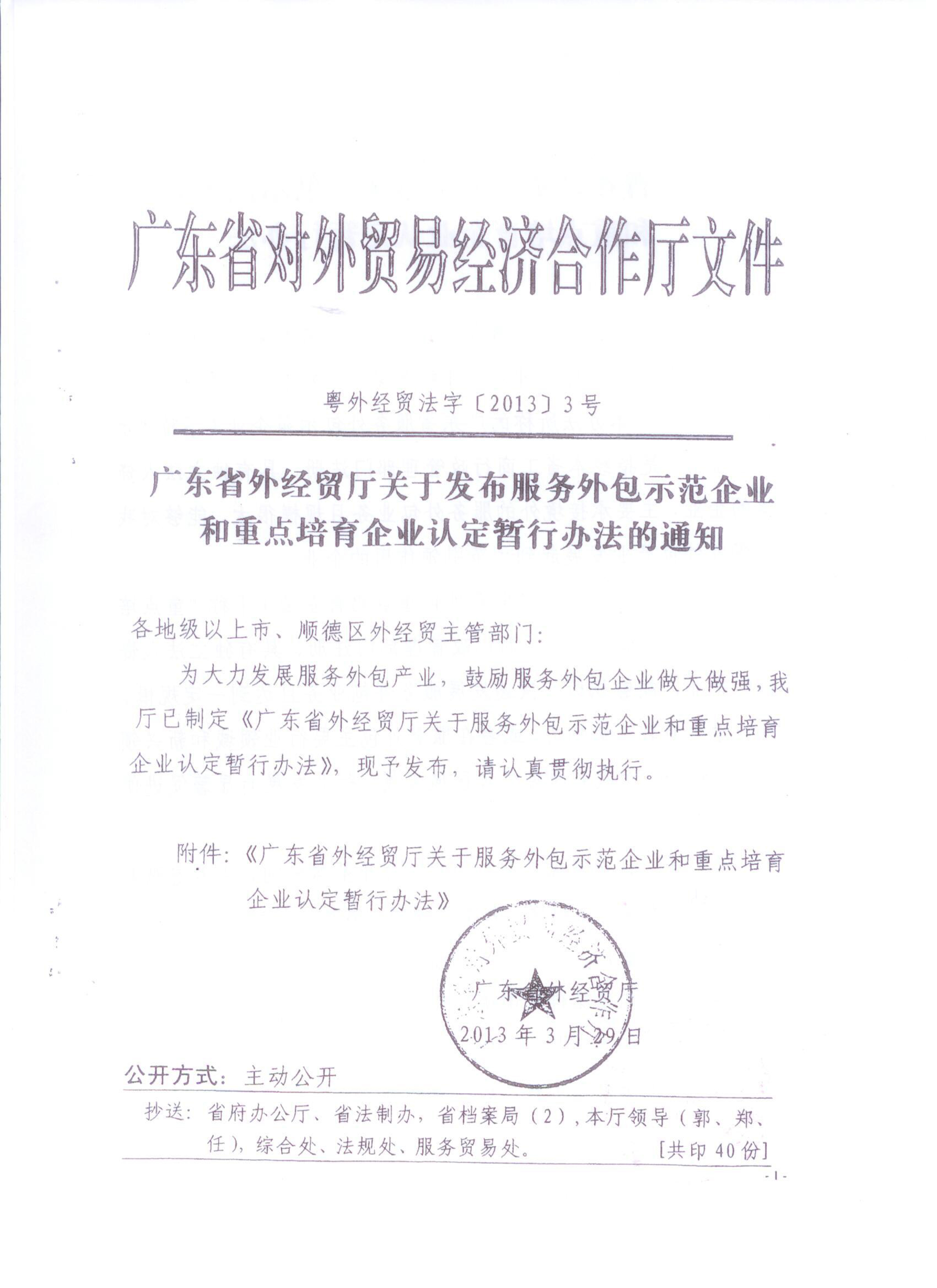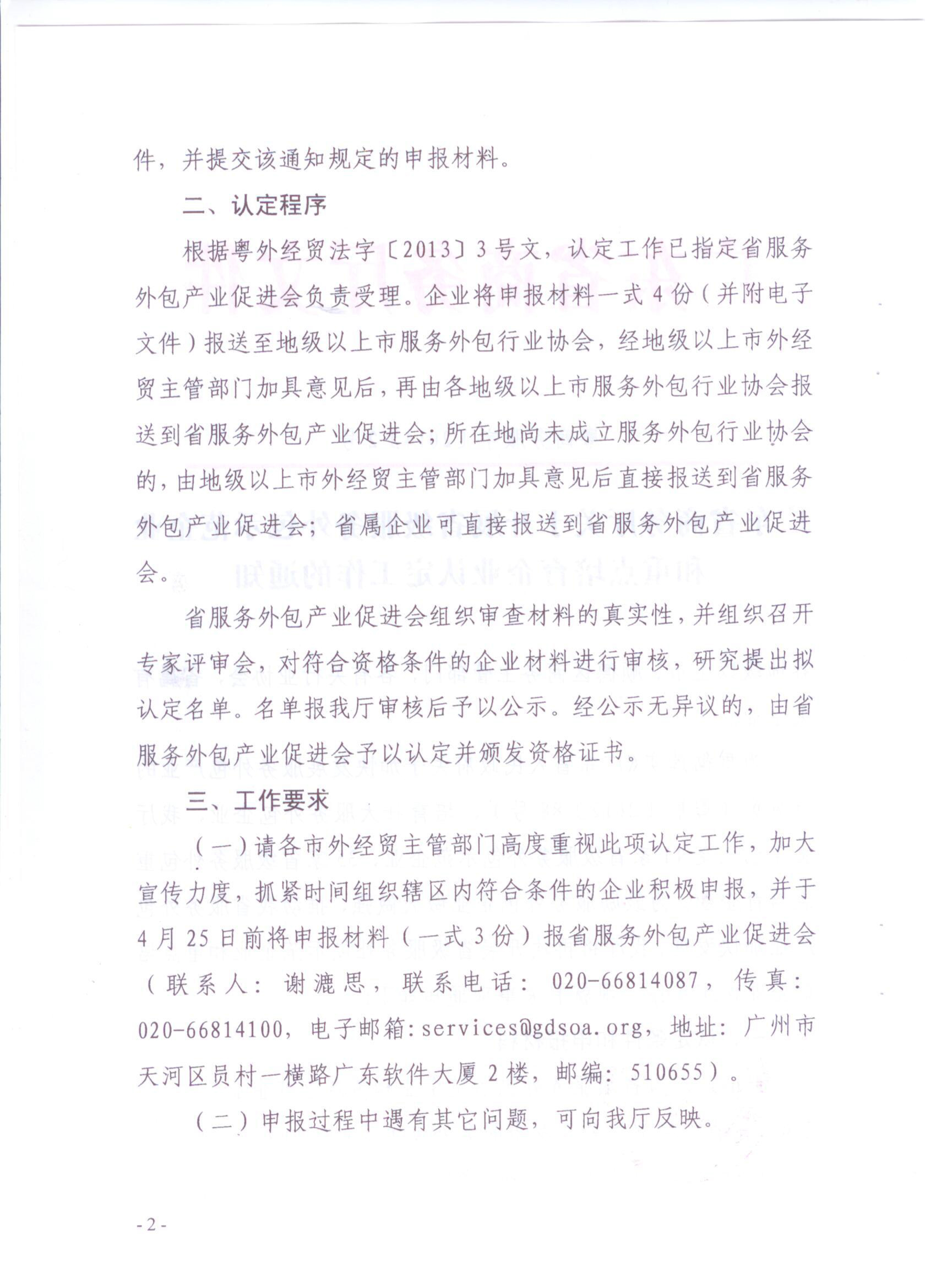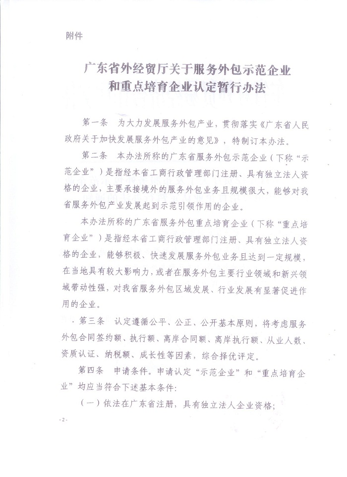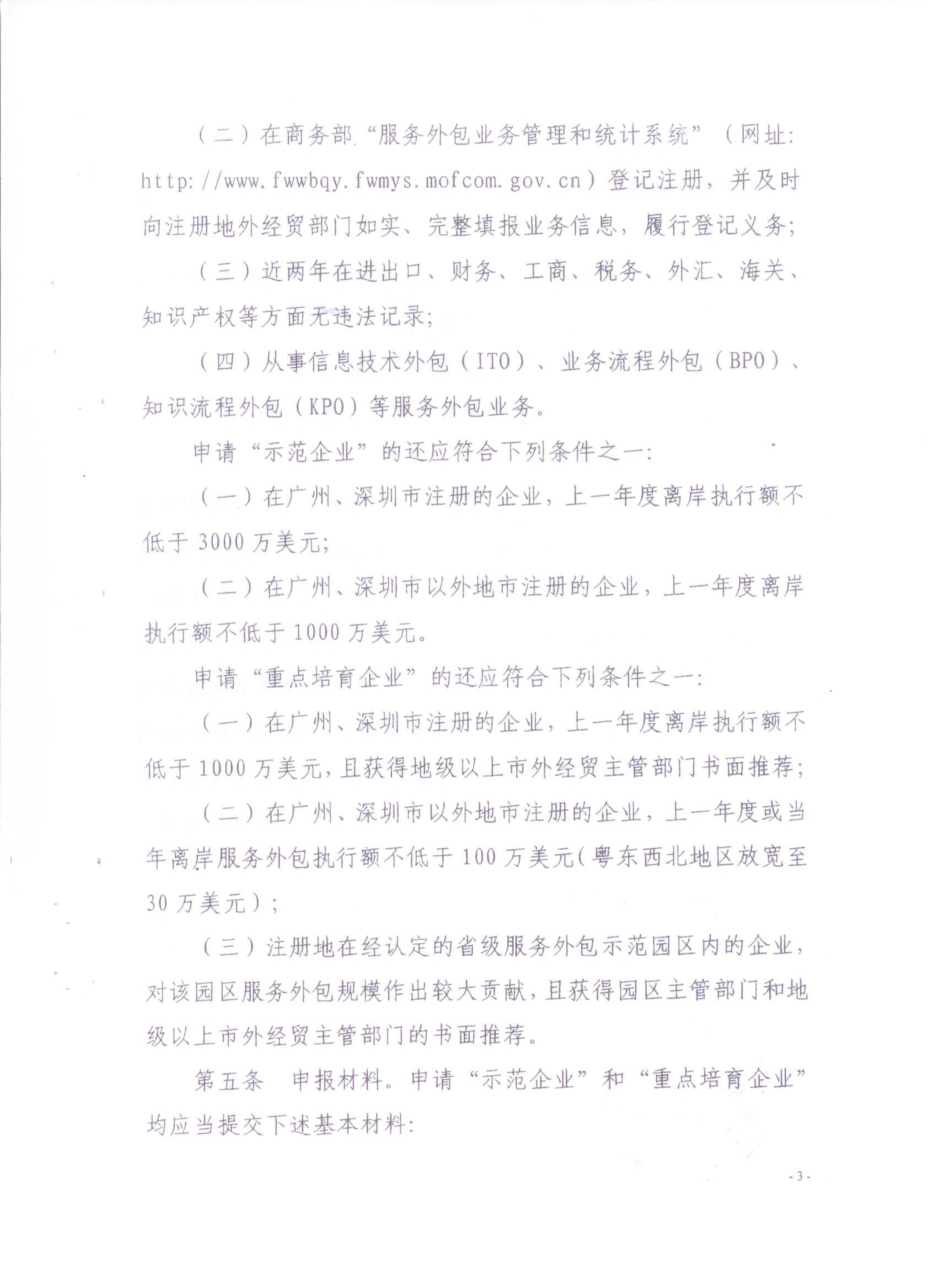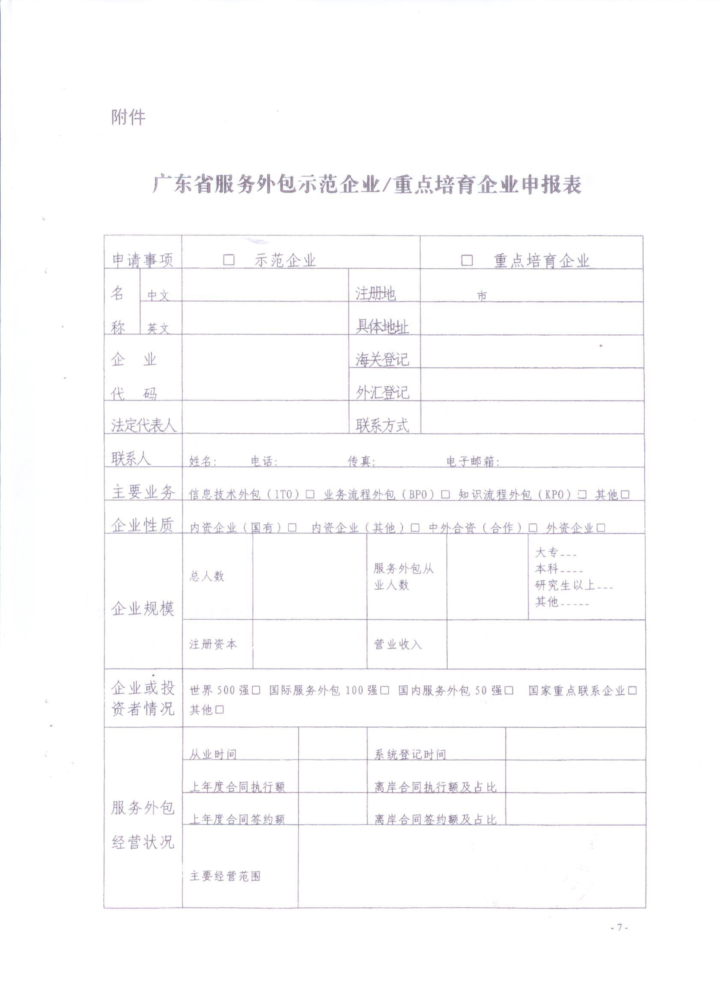 广东省商务厅关于开展省级服务外包示范企业和重点培育企业认定工作的通知