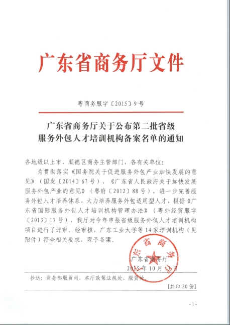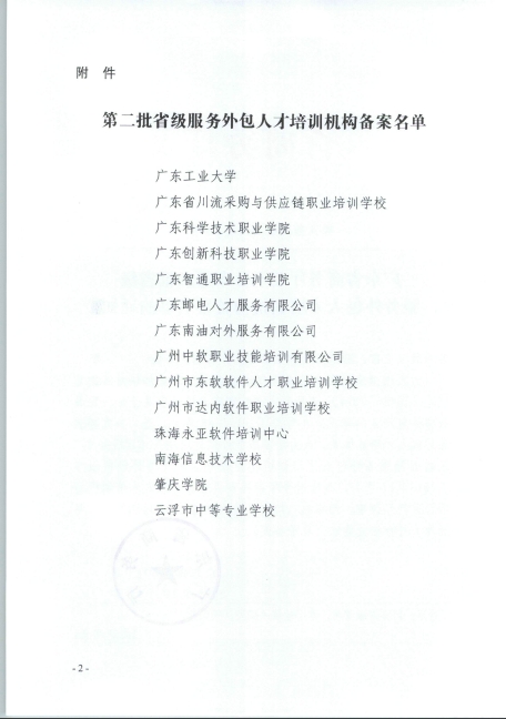 广东省商务厅关于公布第二批省级服务外包人才培训机构备案名单的通知