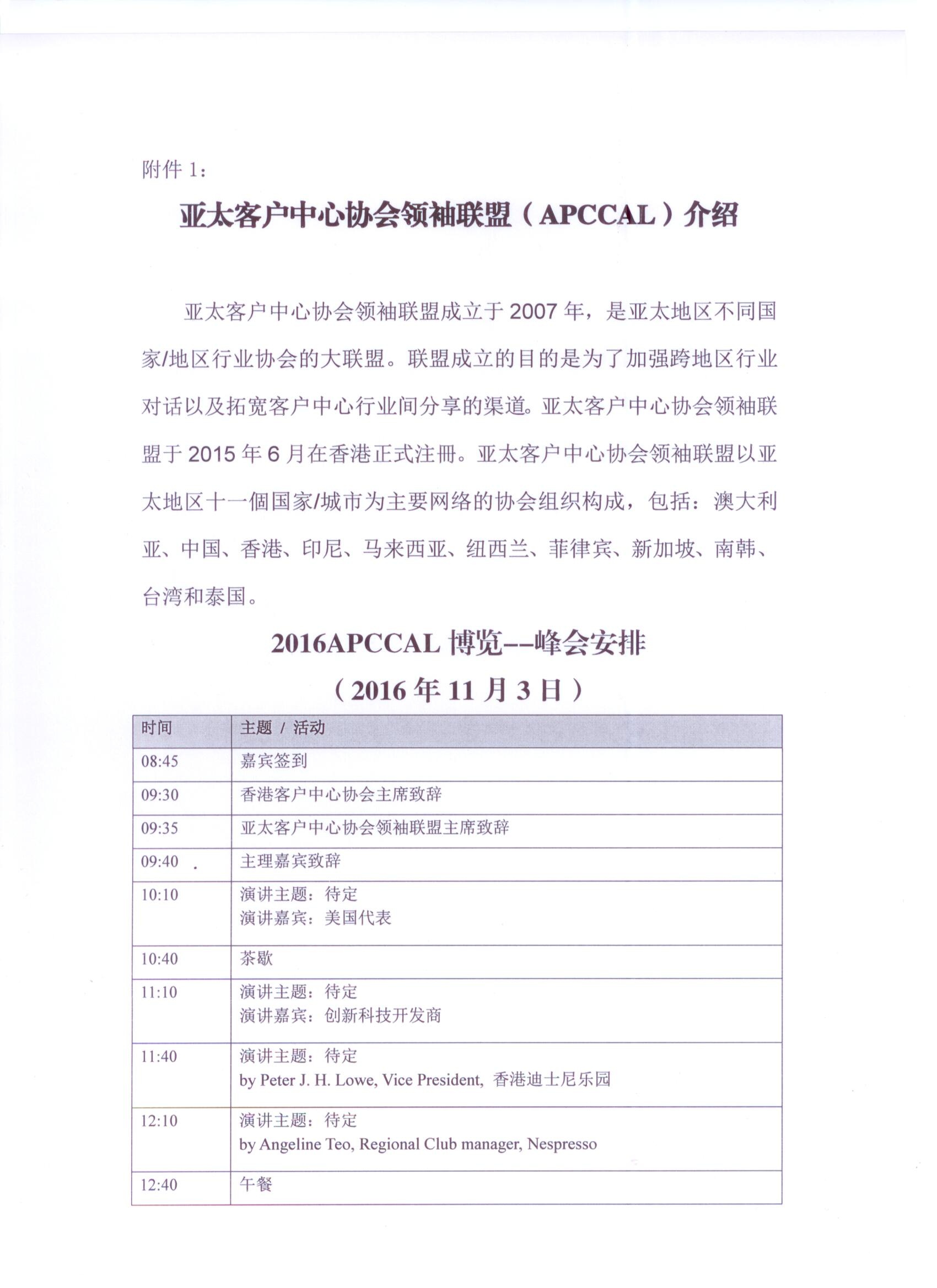 附件1 APCCAL介绍及2016APCCAL博览--峰会安排