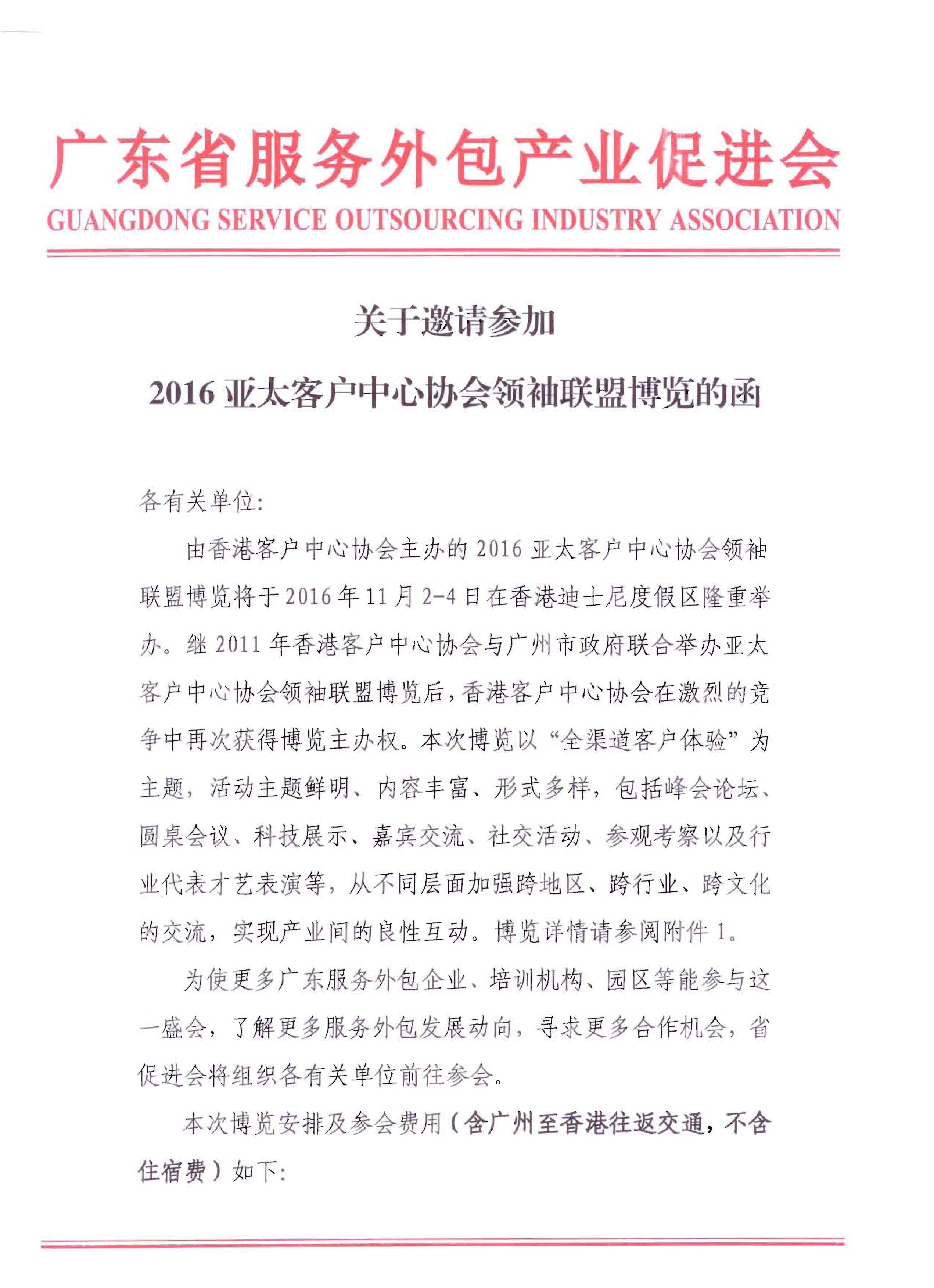 关于邀请参加2016亚太客户中心协会领袖联盟博览的函