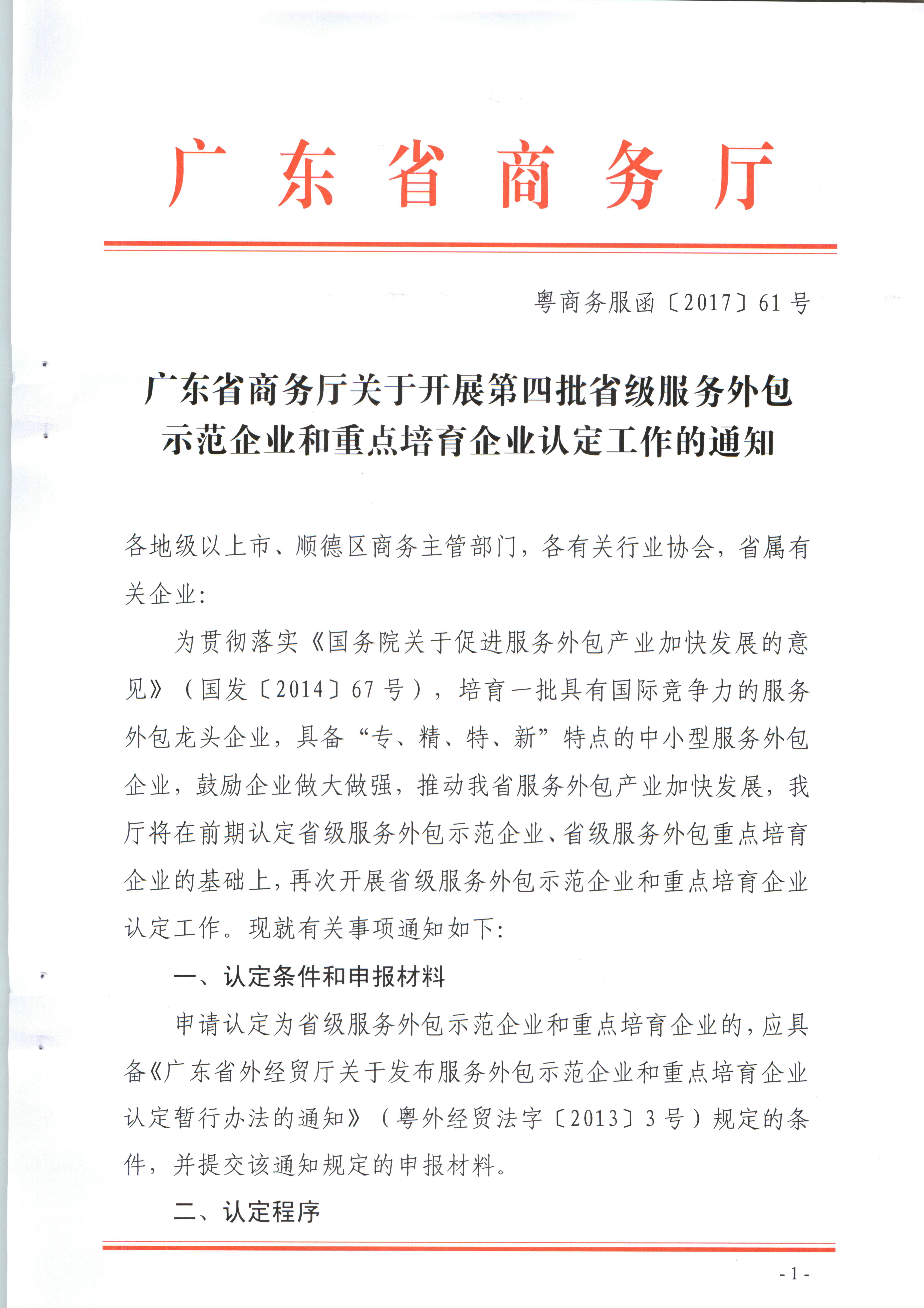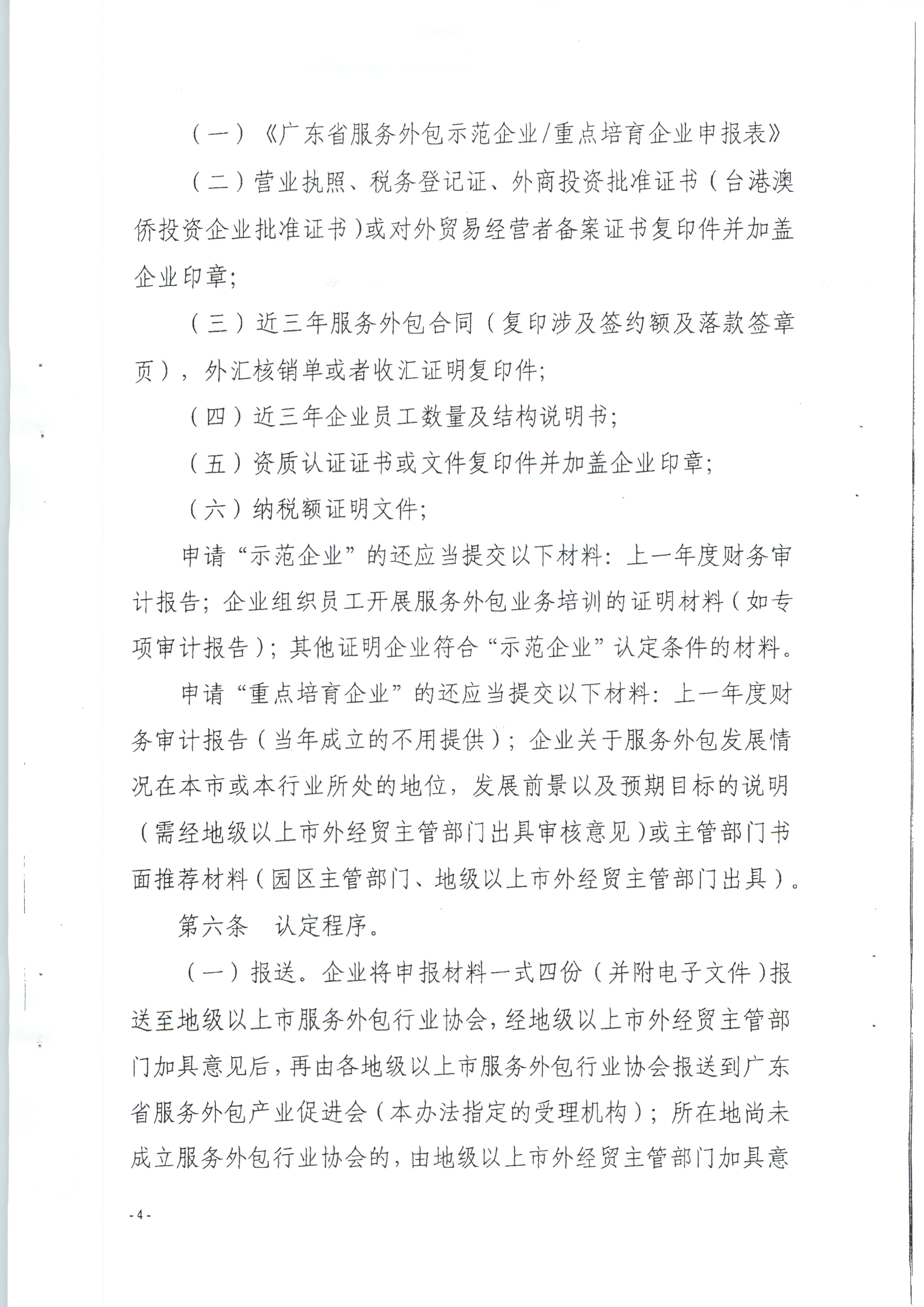 转发 广东省商务厅关于开展第四批省级服务外包示范企业和重点培育企业认定工作的通知