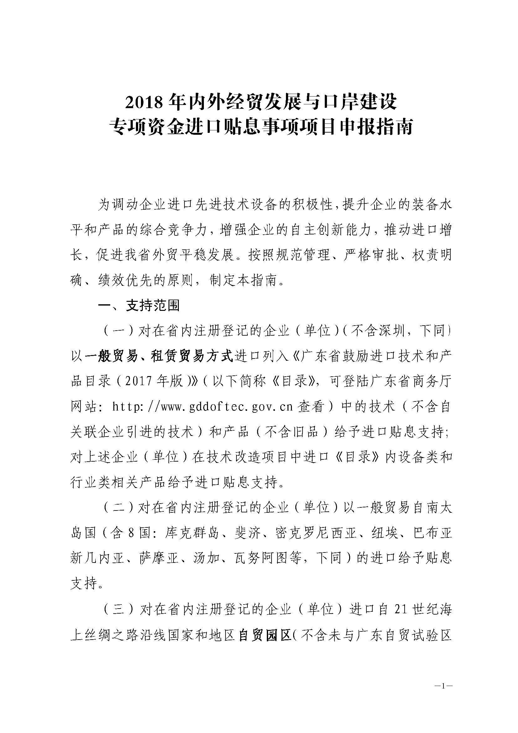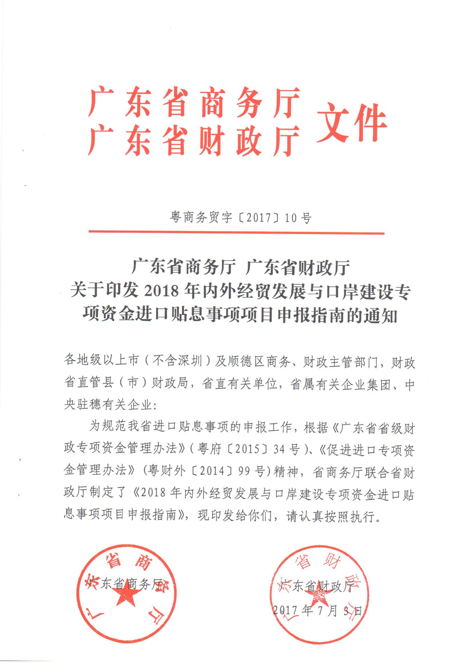 转发 广东省商务厅 广东省财政厅 关于印发2018年内外经贸发展与口岸建设专项资金进口贴息事项项目申报指南的通知