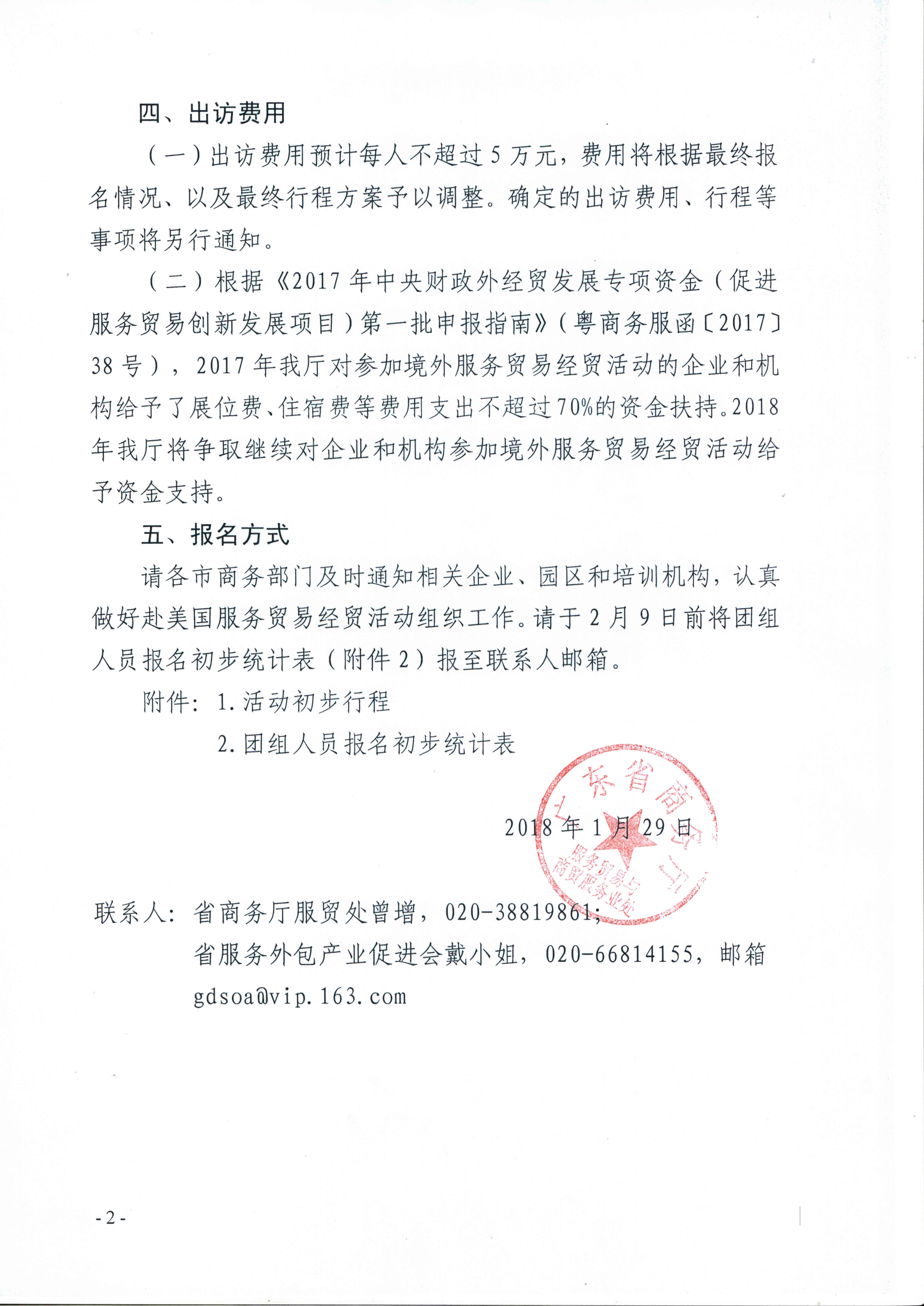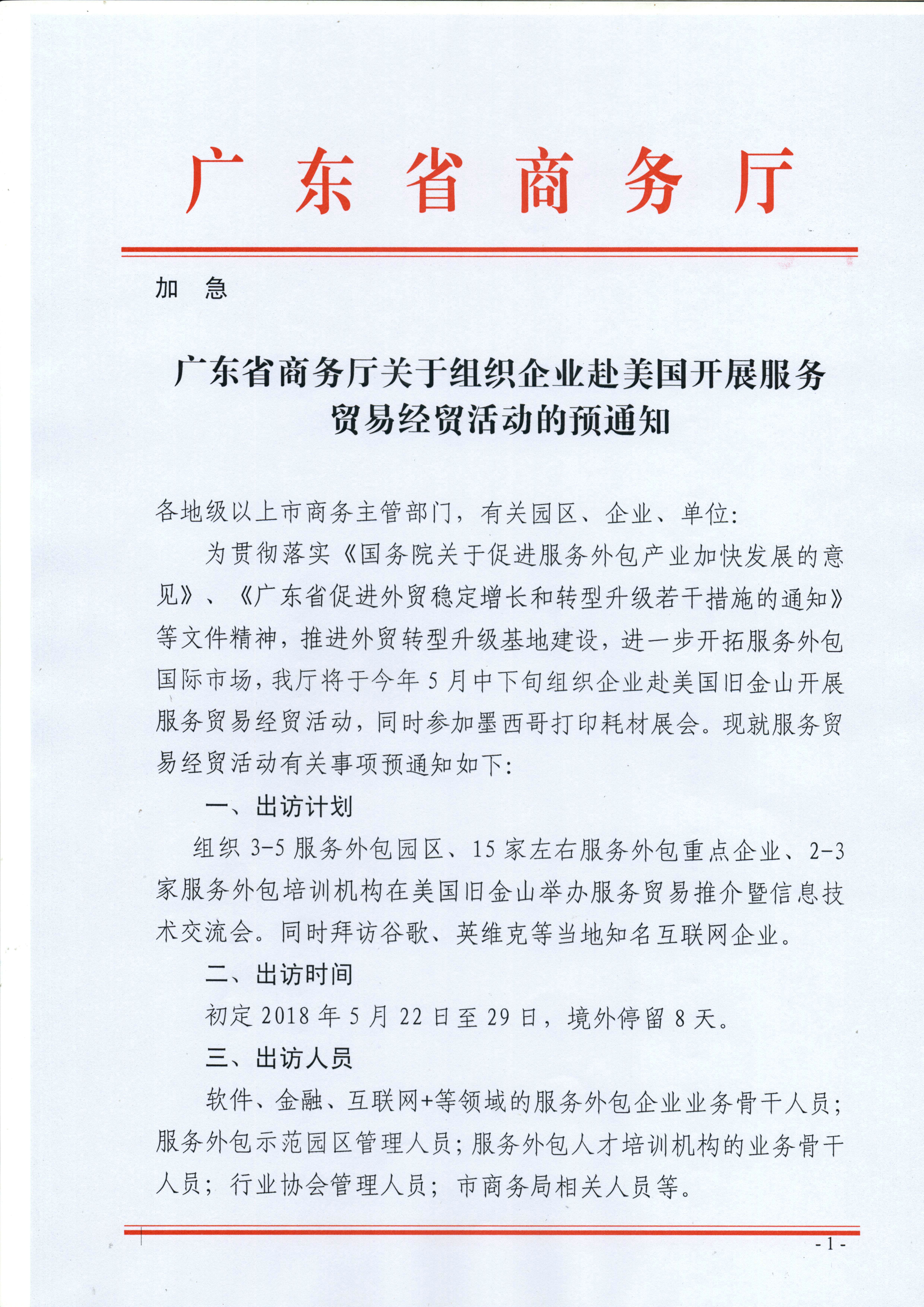 广东省商务厅关于组织企业赴美国开展服务贸易经贸活动的预通知.pdf