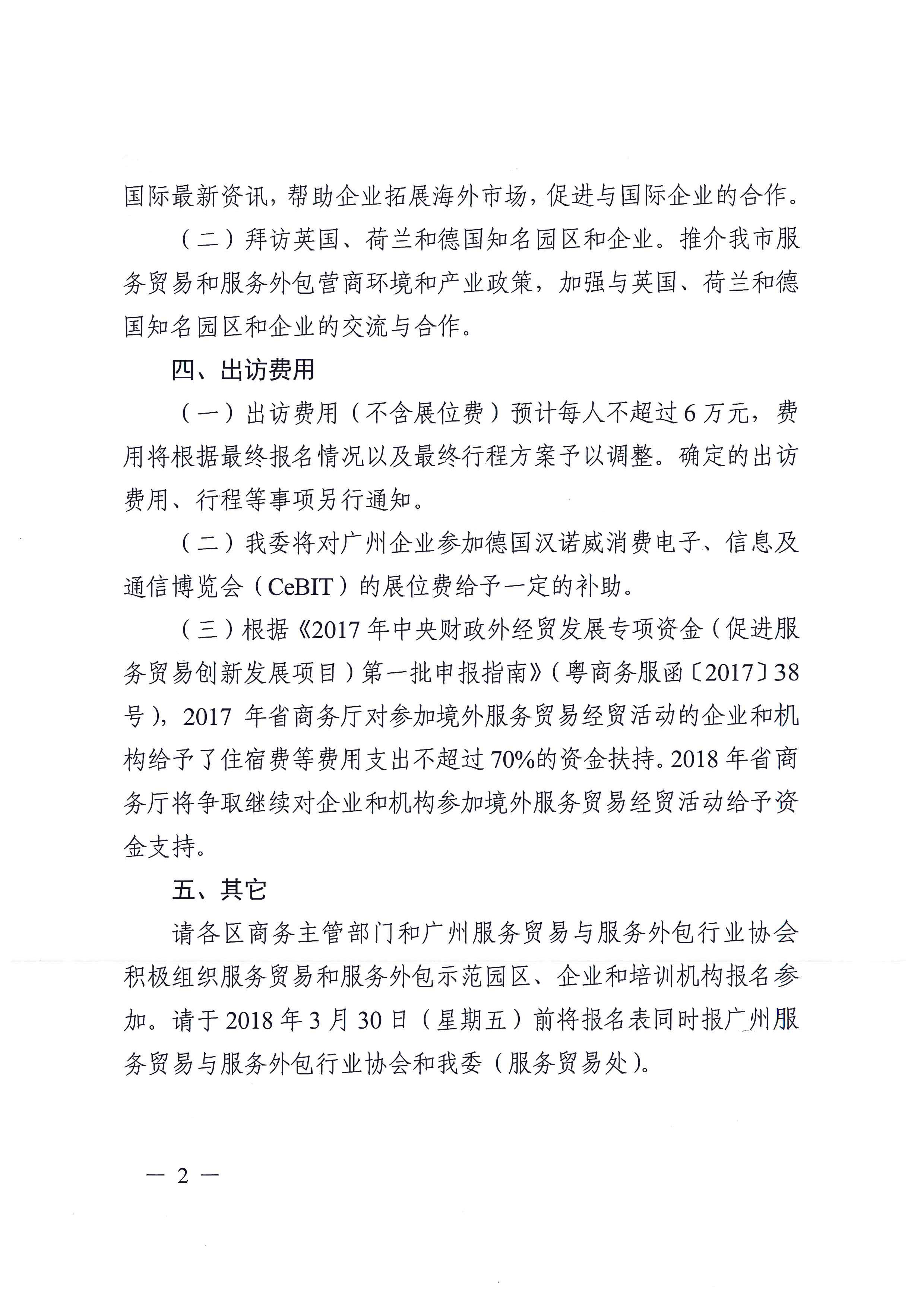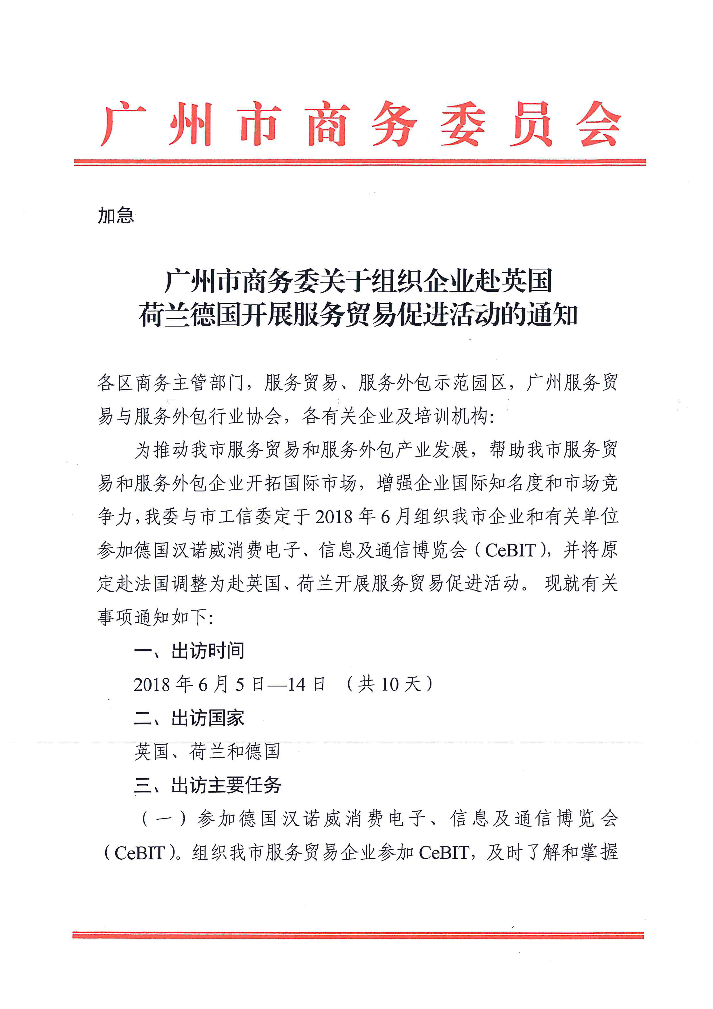 转发 广州市商务委关于组织企业赴英国荷兰德国开展服务贸易促进活动的通知