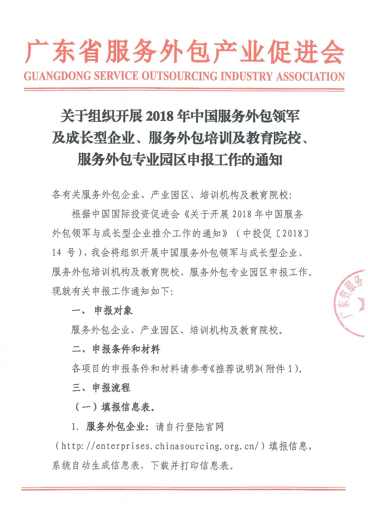 关于组织开展2018年中国服务外包领军及成长型企业、服务外包培训及教育院校、服务外包专业园区申报工作的通知