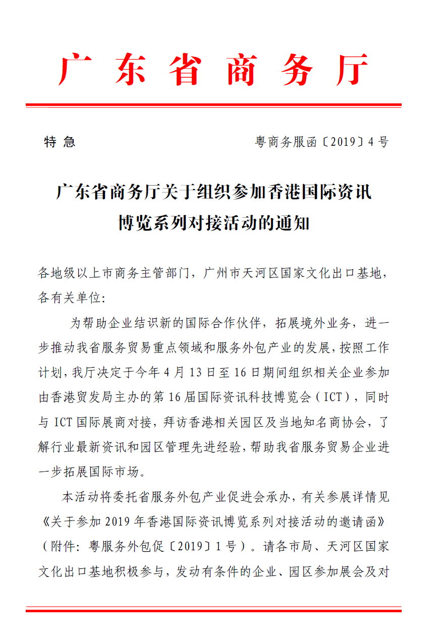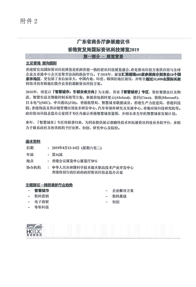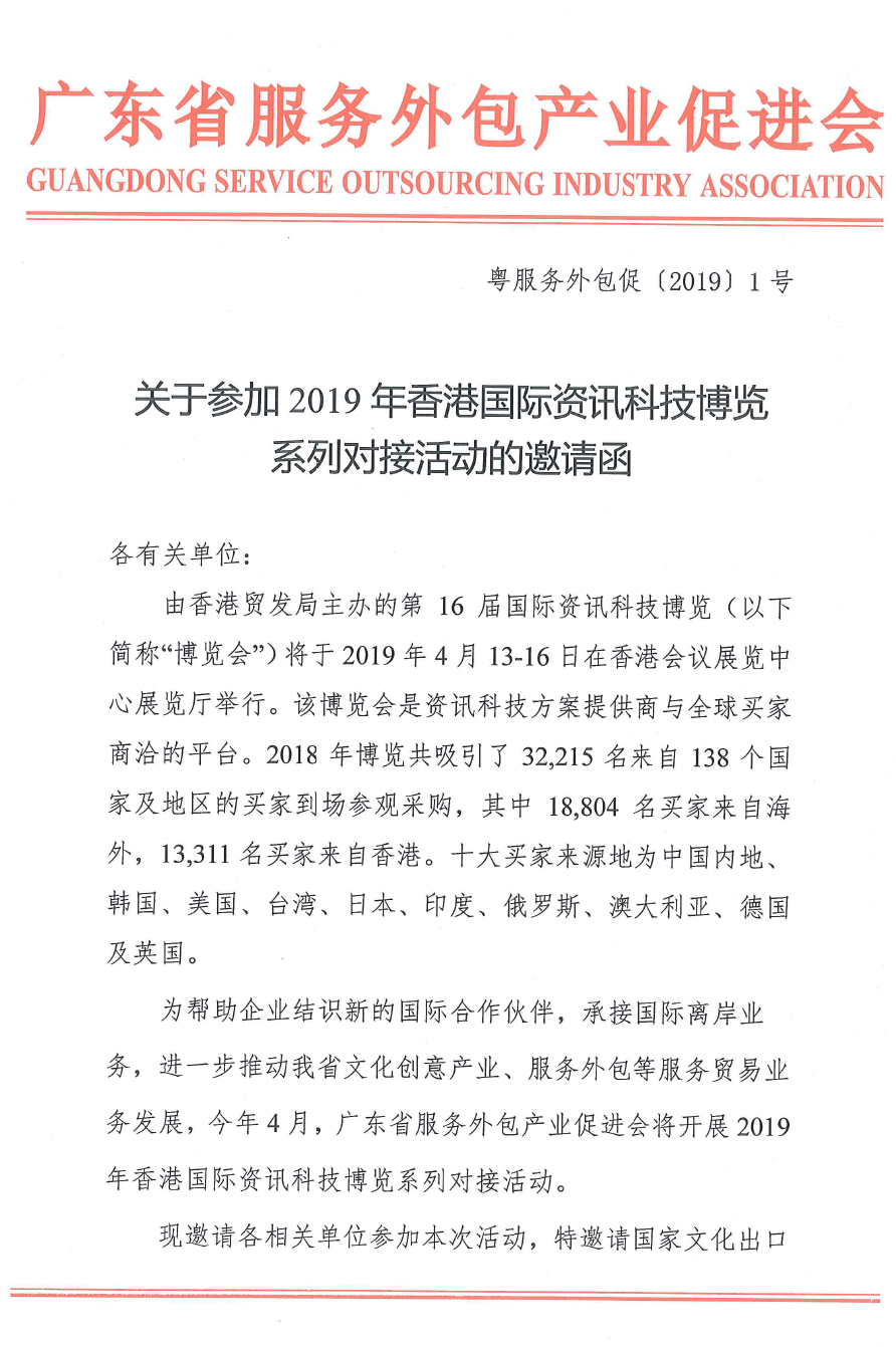 关于参加2019年香港国际资讯科技博览系列对接活动的邀请函