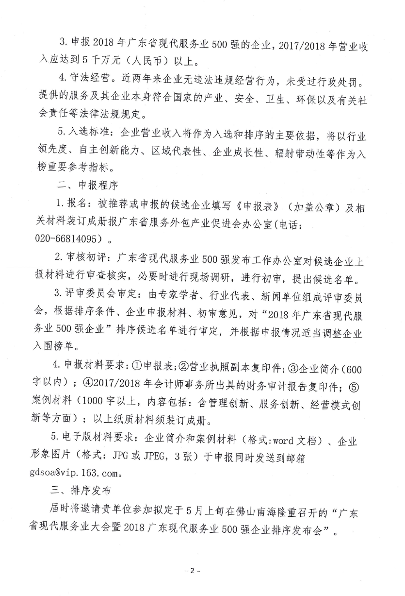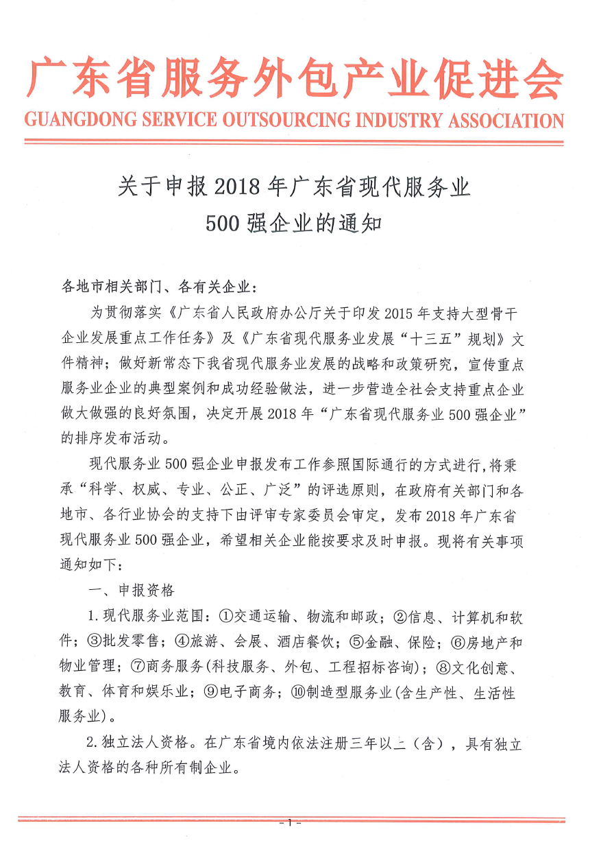 关于申报2018年广东省现代服务业500强企业的通知