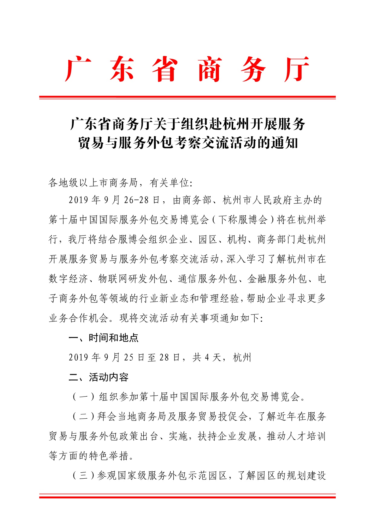 广东省商务厅关于组织赴杭州开展服务贸易与服务外包考察交流活动的通知.pdf