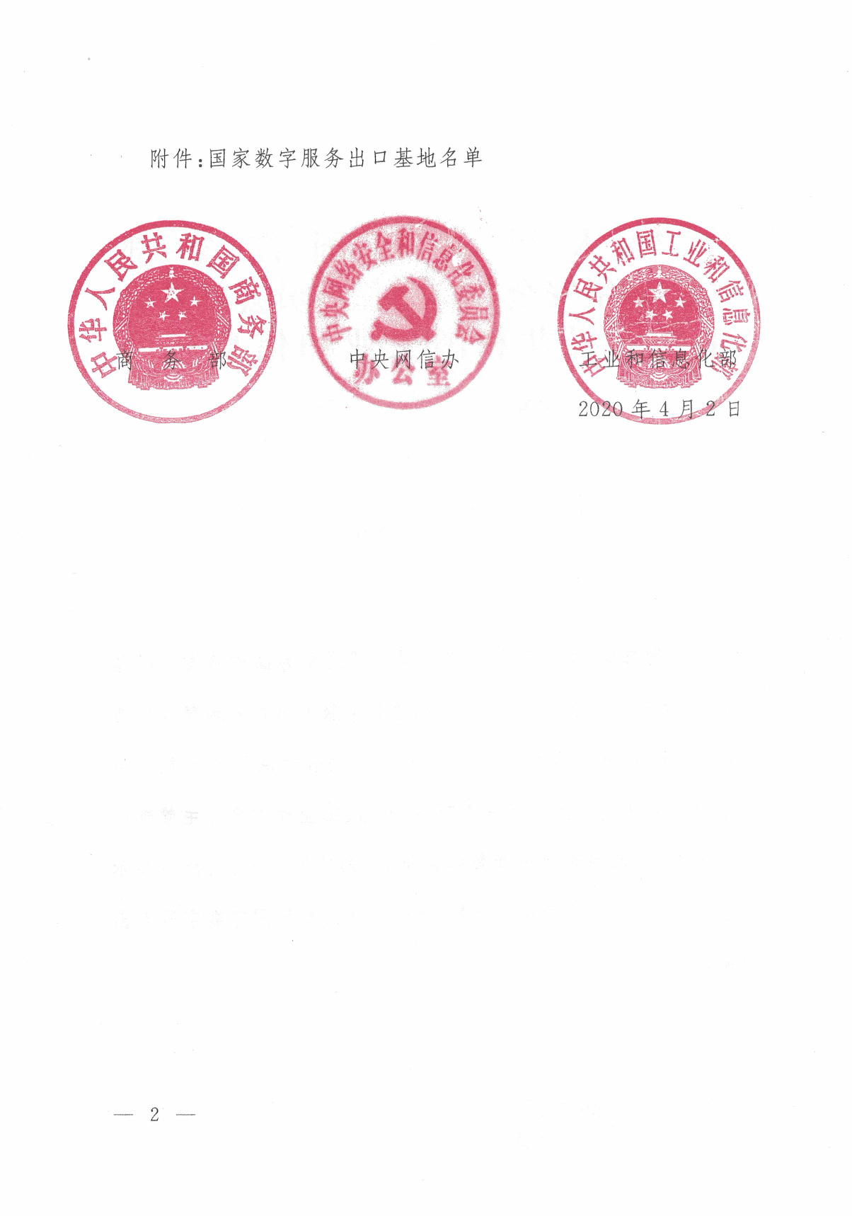 商务部 中央网信办 工业和信息化部公告2020年第8号 国家数字服务出口基地名单