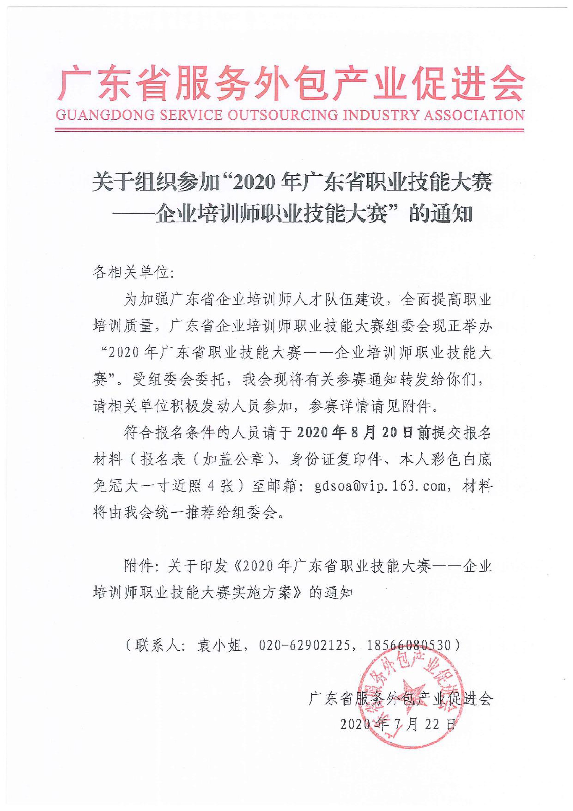 关于组织参加“2020年广东省职业技能大赛--企业培训师职业技能大赛”的通知