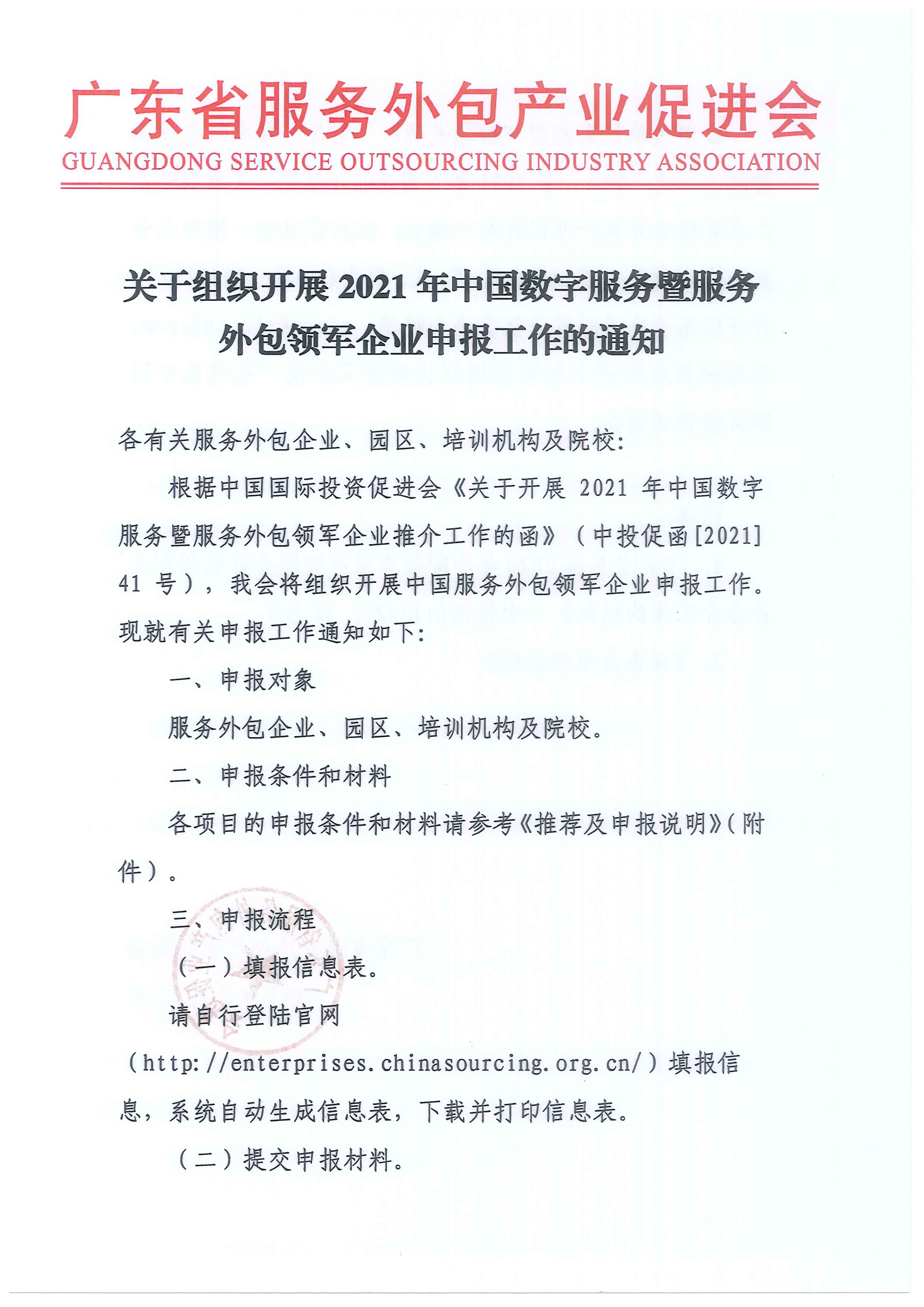关于组织开展2021年中国数字服务暨服务外包领军企业申报工作的通知