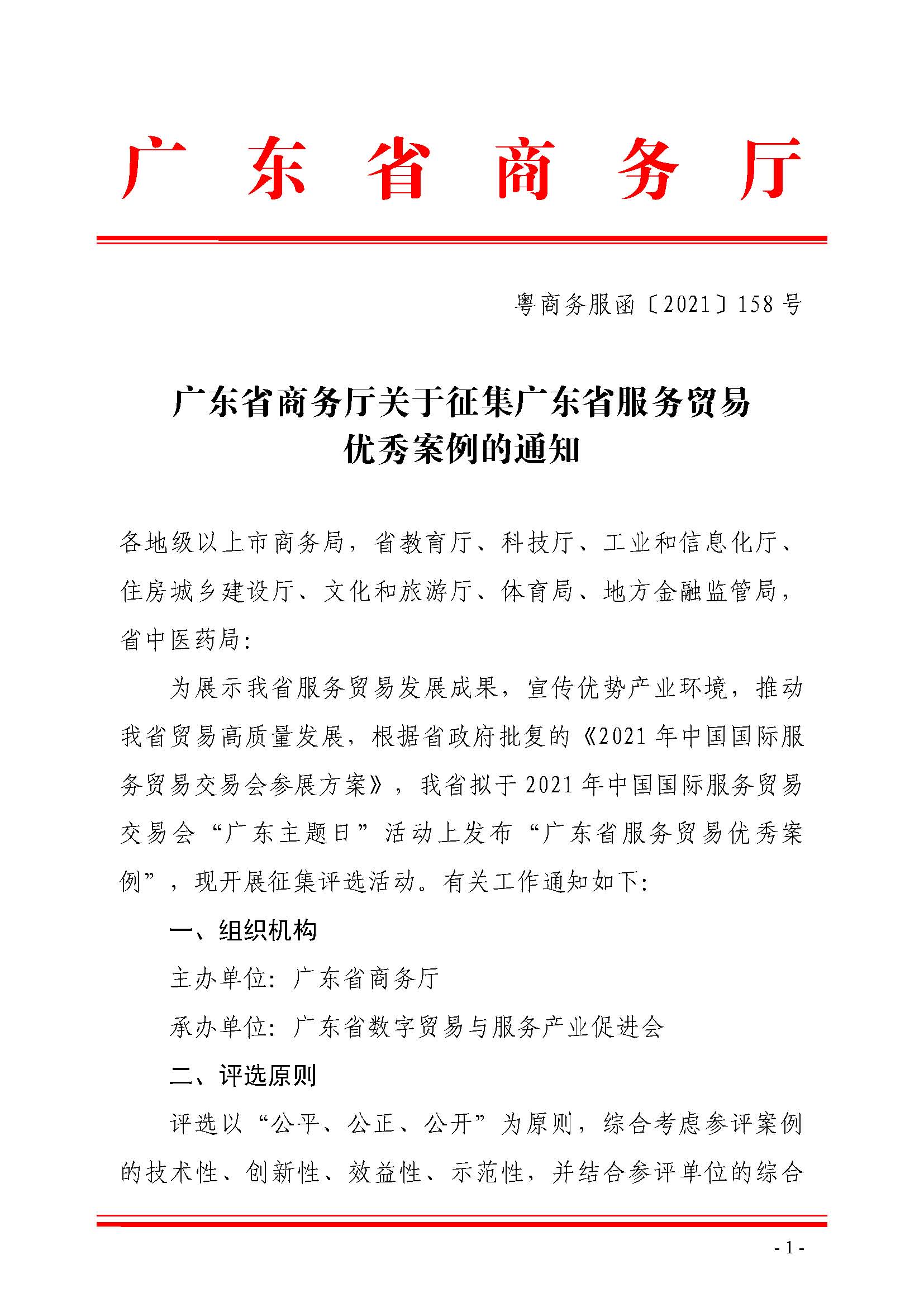 广东省商务厅关于征集广东省服务贸易优秀案例的通知