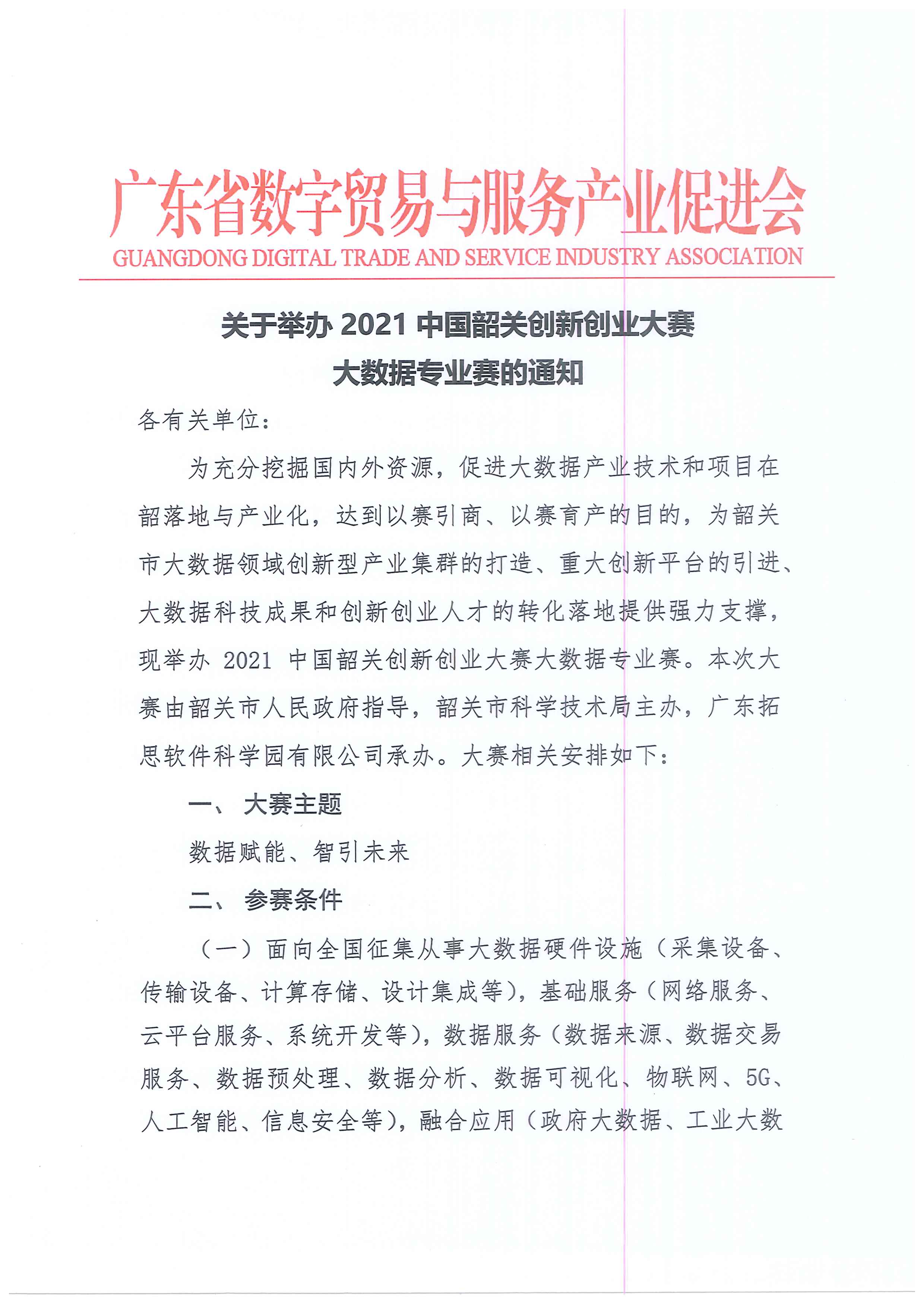 关于举办2021中国韶关创新创业大赛大数据专业赛的通知