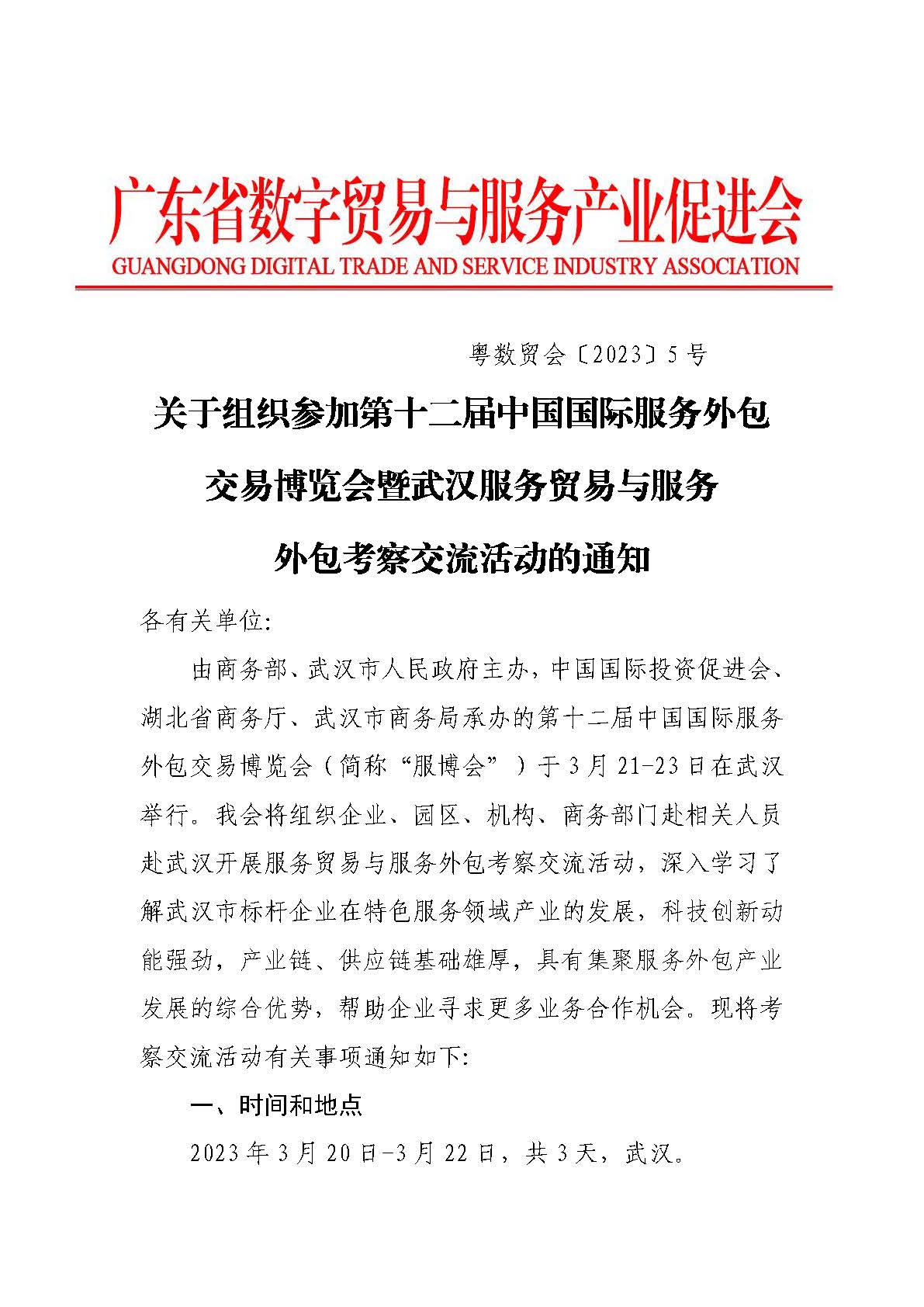 关于组织参加第十二届中国国际服务外包交易博览会暨武汉服务贸易与服务外包考察交流活动的通知
